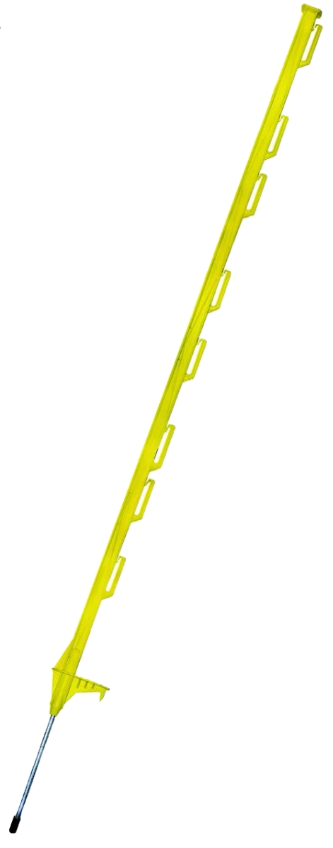 Each post is molded of reinforced polypropylene with a heavy-duty steel stake. Containing extra reinforcing ribs for strength, each post also features a large step-in flange and anti-rotation spike to keep the stake from turning. Use for rotational grazing, gardens, property lines, and construction sites.