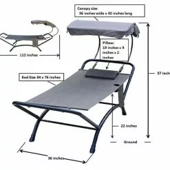 The Algoma Deluxe Lounge is great for relaxing on the patio, by the pool, in the backyard, or on a screened porch. The UV-resistant breathable material is water-resistant and dries quickly. The matching headrest is soft and comfortable, and the heavy-duty steel frame ensures stability and long-lasting use. The overhead canopy is adjustable and provides wide sun protection for the lounger.