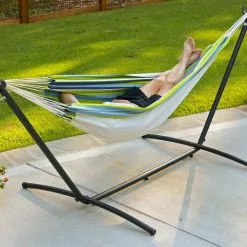 - Polyester hammock with portable steel stand