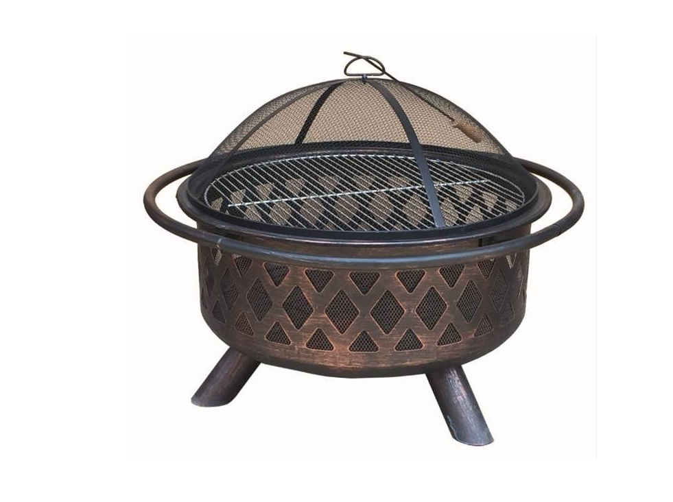 Large wood burning firepit with weave design that creates a rustic ambiance in your backyard.
