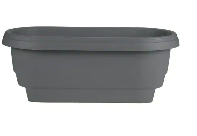 Bloem Deckrail 24inch Plastic Planter is great for home or apartment use and helps you make the most of your porch or patio living space. Use on a patio, mailbox post, balcony, fence, or deck railing. Grow a mini-garden in an elevated space. Compression design fits rail size 3.75 in. or 5.5 in. W. Rail planter also works on widths slightly smaller (3 in. up to 3.75 in. OR 4.75 in. up to 5.5 in.). For smaller rail sizes we recommend securing with screws or zip ties under the railing for added stability (screws not included). The planter was designed to maximize inside growing space and features a tiered bottom design allowing dirt and roots to grow strong and deep. The planter features a smooth texture with a matte finish. Made of durable resin, this planter by Bloem is 100% UV stable to prevent fading and cracking and ensures long-lasting use. BPA free. Includes optional punch-out holes for drainage.