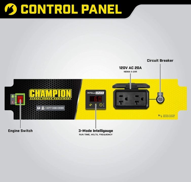 Power up with Champion’s reliable recoil start, plus Cold Start Technology ensures a quick start in cold weather. Champion also makes it easy to monitor voltage, frequency and operating hours with Intelligauge.