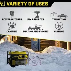 At 1500 starting watts and 1200 running watts, this rugged generator with its durable steel frame is easy to transport and provides just what you need for RV use, camping, tailgating, boating, hunting, weekend trips, family vacations and small jobs around the house.