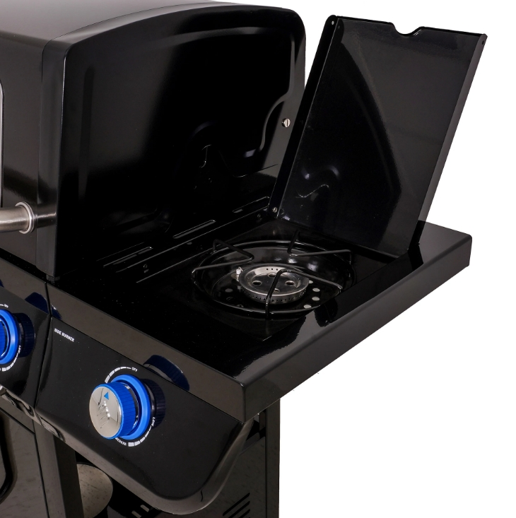 •Stainless-steel side burner for convenience