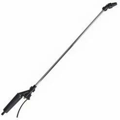 Lever grip handgun features an aluminum lance and a adjustable polymer nozzle that delivers 30 feet of horizontal spray and 16 feet of vertical spray. Plus 15 feet of hose gives you the length necessary to reach tight areas, around buildings and other obstacles