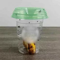 Take control of pesky flies with the Fly Lid! Unlike other traps that rely on poison or sticky adhesive to trap flies, the fly lid allows you to turn an ordinary cup into an effective and non-toxic fly trap. Simply bait the cup with the attractant of your choice. You can use common ingredients from around the house like vinegar, fruit, honey… sometimes even red wine can be the best fly killer! Once the flies catch the scent of your bait, they will fly down the funnel and won’t be able to get back out. The Fly-Lid is discreet and does not rely on foul odors to bring in the flies, especially if you are using the trap indoors, you can use sweet smelling bait. If you are wanting to take care of a big fly problem outside, you can use a more potent bait (a piece of shrimp in water really makes the flies go crazy after a day or so). Just a single 16 oz plastic cup with the Fly-Lid on top can catch thousands of flies!