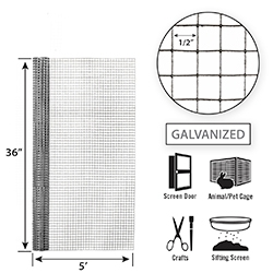 •19 gauge galvanized hardware cloth with 1/2-inch openings