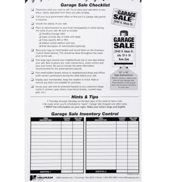 Everything you need for a successful garage sale in this Garage Sale Kit (8″ x 12″). This kit includes signs, checklists, and pre-labeled price stickers. Garage sales have never been easier.