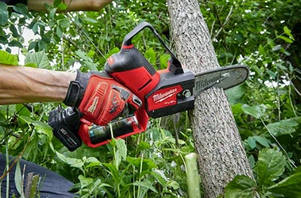 Our M12 FUELâ„¢ HATCHETâ„¢ 6″ Pruning Saw delivers unmatched control & access, has the power to cut 3″ hardwoods, and delivers up to 120 cuts per charge. This electric pruning saw is designed to meet the ergonomic, performance, and durability needs of landscape maintenance professionals. Weighing less than 5 lbs and featuring a compact design, the cordless pruning saw gives you increased control and maneuverability in tight access areas. The POWERSTATEâ„¢ Brushless Motor delivers the power to complete cuts in demanding hardwood materials. The REDLINK PLUSâ„¢ Intelligence enables full-circle communication between the tool and battery, providing you with unmatched levels of performance, protection, and productivity. The advanced electronic package also delivers an instant throttle response and a variable speed trigger for ultimate control over the power range. The M12â„¢ REDLITHIUMâ„¢ XC 4.0Ah Battery (sold separately) delivers best in class run-time and performance. This pruning saw features a full house chain, easy access chain tensioner, automatic oiler, metal bucking spikes, and onboard storage for the scrench. The MILWAUKEE® M12 FUELâ„¢ HATCHETâ„¢ 6″ Pruning Saw is part of the M12â„¢ System which is fully compatible with over 100 solutions. In addition to the Pruning Saw (2527-20), this product includes (1) Oregon 6″ Bar & Chain, (1) Scabbard, and (1) Scrench.