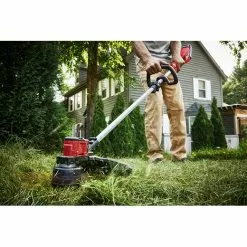 The Milwaukee M18 Brushless String Trimmer delivers you more clearing power and a larger cutting swath than battery-powered competitors. The brushless motor was built and optimized specifically for trimming applications and provides up to 6,200 RPM. Paired with REDLINK Intelligence and an M18 REDLITHIUM HIGH OUTPUT battery, the trimmer provides efficient power delivery, providing you with longer run-time. The trimmer features high and low speed settings with a variable speed trigger. High-speed provides the power to take on demanding applications, and low-speed maximizes run-time while having plenty of power for grass trimming. The 16″ cutting swath trims more grass in a single pass, which increases your productivity. The Easy Load Trimmer Head delivers an easy line loading experience and the ability to load up to 25′ of trimmer line in under 30 seconds. This MILWAUKEE cordless string trimmer is a part of the M18 System, which is fully compatible with over 200 solutions.