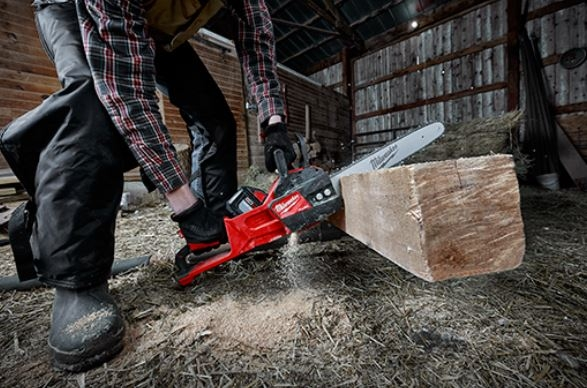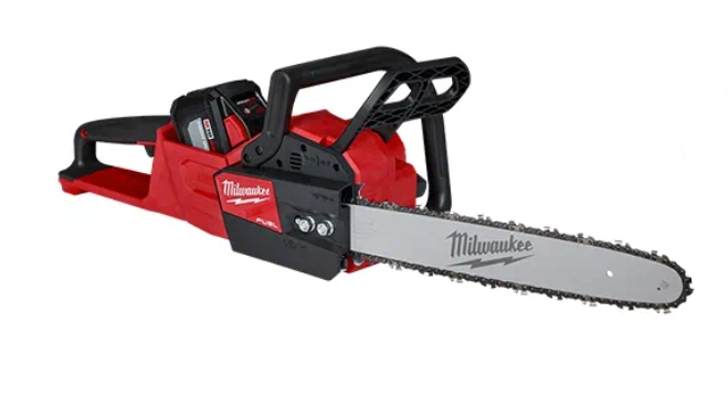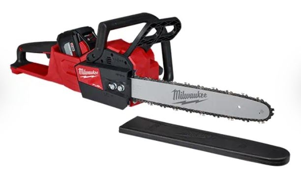 The Milwaukee® M18 FUELâ„¢ 16″ Chainsaw delivers the power to cut hardwoods, cuts faster than gas, and delivers up to 150 cuts per charge. The unit is designed to meet the performance, durability and ergonomic needs of professional landscape maintenance, power utility, and the installed M18â„¢ user. The POWERSTATEâ„¢ Brushless Motor maintains speed under heavy loads without bogging down to outperform small gas engines and higher voltage systems. REDLINK PLUSâ„¢ intelligence ensures maximum performance and protection from overload, overheating and over discharge. The M18â„¢ REDLITHIUMâ„¢ HIGH OUTPUTâ„¢ HD12.0 battery delivers unmatched run-time in all applications. M18 FUELâ„¢ technology allows the unit to reach full throttle in under 1 second providing ultimate control and productivity.