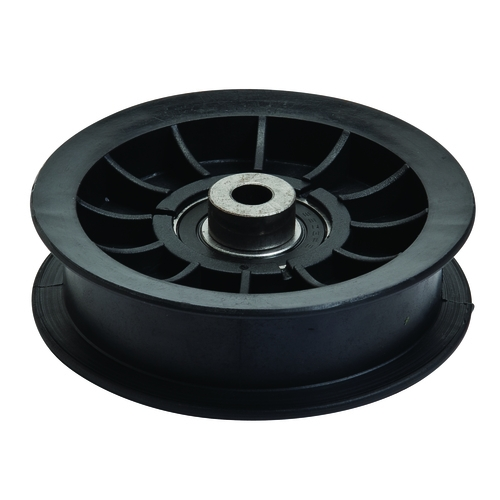 This flat idler pulley fits 46″ decks for 600 and 800 series (1993 and newer).