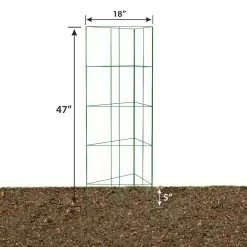 Provide support and stability to tomatoes and other top-heavy vines and vegetables with the GroTall Tomato Trellis. This sturdy trellis measures nearly 4-feet high, giving plants and flowers plenty of space to grow, and the strong construction can support even the heartiest species. The lightweight steel is coated in heavy-duty powder, protecting it from rust, fading, and wear caused by the elements, and this trellis dissembles easily for compact and simple storage. The green color blends in well with any garden for an unassuming, natural look. The GroTall Tomato Trellis measures 47″H x 18″W.