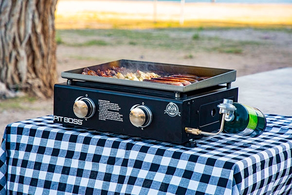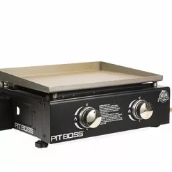 Turn up the heat with the Pit Boss Portable Gas Griddle. Add one to your outdoor cooking arsenal to experience versatile features like fold-and-go portability, ready-to-use pre-seasoned surface, and a dependable heat-retention design. This griddle is fitted with a durable non-stick cook surface, heat-protecting burner shrouds, and robust BTUs. The Pit Boss Portable Gas Griddle is made for bigger, hotter, heavier outdoor cooking.