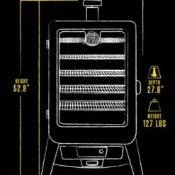 The Pit Boss Sportsman 5-Series Wood Pellet Vertical Smoker delivers 100% hardwood-fired flavor to meat, game, fish, jerky, and more. This Pit Boss 5-Series smoker features five adjustable cooking racks with 1,1513 square inches of total cooking space. The large view window lets you monitor the cooking process and remaining pellets without opening the door, while the dial-in digital control board makes it easy to set and adjust the temperature. The Sportsman 5 smoker also comes with six sausage hooks and a meat probe. Whether you’re smoking wild game or brisket, the Pit Boss Sportsman 5-Series Wood Pellet Vertical Smoker gives outdoorsmen a powerful cooking experience designed for set-it-and-forget-it smoking.