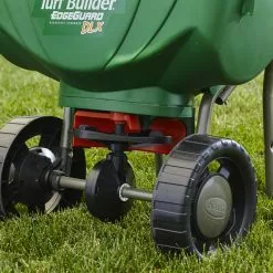 Use the Scotts Turf Builder EdgeGuard DLX Broadcast Spreader to apply grass seed and fertilizer in spring, summer or fall. The large hopper holds up to 15,000 sq. ft. of Scotts Lawn Care Products and is delivered ready to use and pre-calibrated; no assembly required