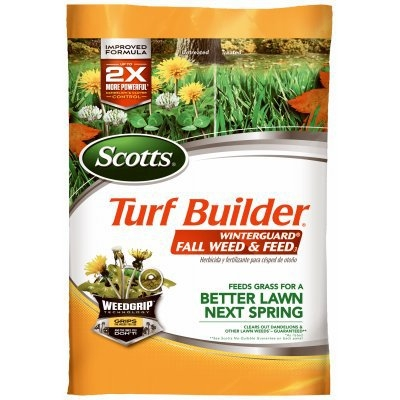 5,000 SQFT Coverage, Turf Builder Winterguard Fall Weed & Feed, Improved formula – up 2X more powerful dandelion and clover control.