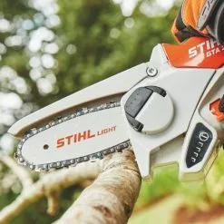 The GTA 26 battery-powered garden pruner features the easily removable ¼” PM3 Saw Chain. This saw chain gives users the ability to make smooth and precise cuts. Its design also gives users the benefit of low vibration.