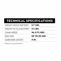 The 4-inch guide bar offers toolless removability and is designed to allow users the ability for precision cutting and pruning, and its size makes it possible to get to those hard-to-reach spots.
