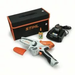 The STIHL GTA 26 battery-powered garden pruner is not only a completely new tool in the STIHL product range, it is the first of its kind on the U.S. market. With its lightweight and compact design with rubber grips this tool provides ease of use and minimizes wrist torsion. An LED light display provides charge level and status of the tool. With battery, charger, multi-oil, and even a transport bag, the GTA 26 set comes with everything users need to take on a variety of landscaping tasks.