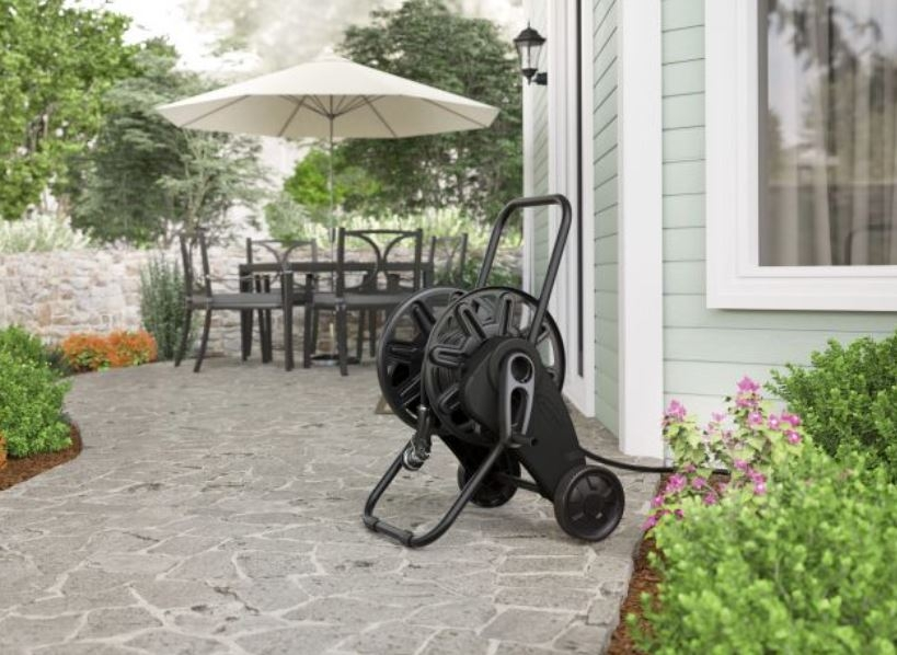 The Hybrid Hosemobile™ by Suncast® holds up to 175 ft. of standard 5/8 in. hose and comes fully assembled to ensure mobility ease of use in any location. Its lightweight material with a fold down handle makes it easy to transport through your garden and provides compact storage for winter. Leader hose and hybrid brass in and out tube are included. Constructed of durable steel and recycled resin, this sustainable handy hose reel is easy to maintain!