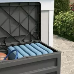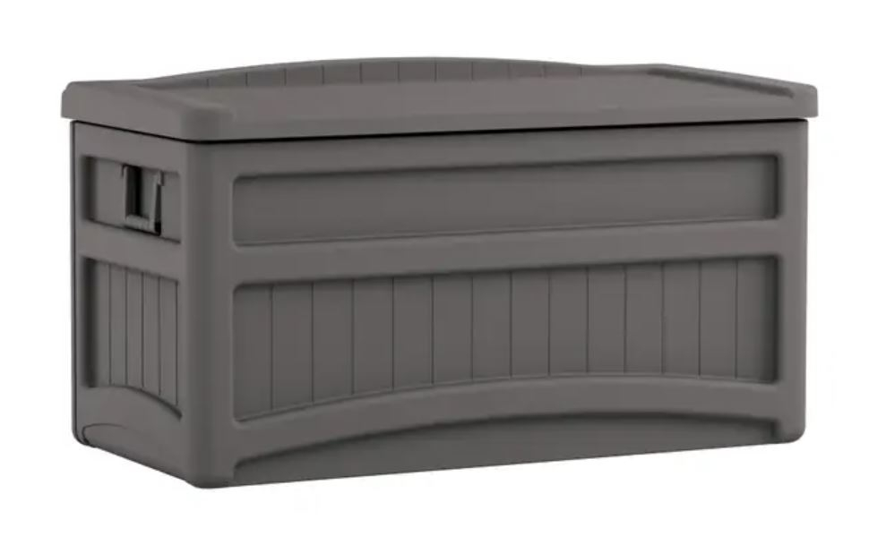 This versatile 73 Gallon Medium Deck Box by Suncast is the perfect addition to any outdoor living space; providing both a classic design and unique function. It is ideal for storing furniture cushions, gardening supplies and other outdoor accessories; while its flat surface provides a convenient seating option. Integrated wheels and pull handles allow for easy portability. The weather-resistant design of the lid, along with the solid resin construction is built to last and protect contents from the elements all year long.