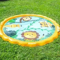 Elevate your backyard game to an entirely new level with Swimline’s Safari Sprinkler Mat! Measuring 68 Inches in diameter, this sprinkler mat is guaranteed to provide hours of water fun on hot summer days. Built with safety at the forefront, spend more time enjoying quality time with your family without having to worry about safety risks. Let your child’s imagination run wild with inspiration from the spray pad’s fun safari friends. Setup is easy – simply unroll, attach your hose, and start playing! Compatible with standard hose connections.