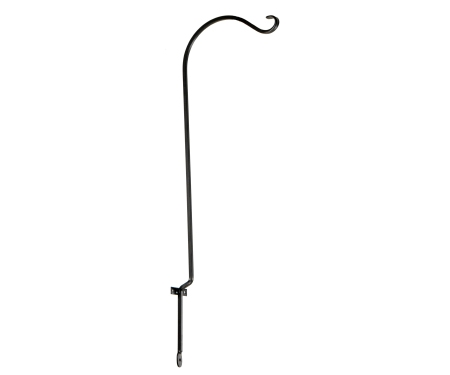 36″ bird feeder hook for fence and deck rail. Offset to go around wood hand rails. Hand-crafted wrought iron construction. Black.