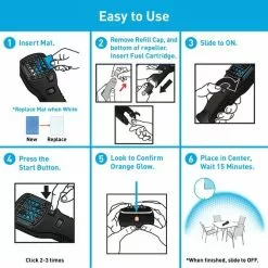 - Package contains: 1 Black MR300 Repeller, 1 Camouflage Holster, and 12 hours of refills – 3 repellent mats and 1 fuel cartridge.