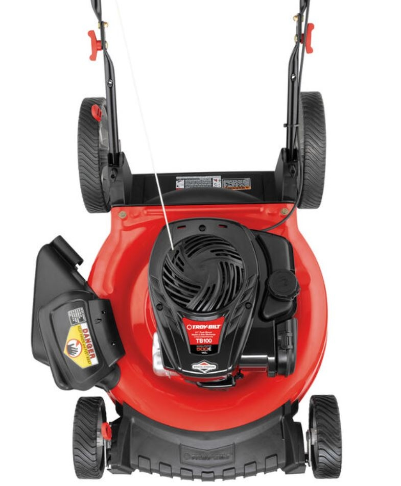 Yard work just got easier thanks to the Troy-Bilt® TB100. This walk behind lawn mower features a dependable 140cc Briggs & Stratton® engine that delivers reliable power to get the job done right and is equipped with Prime ‘N Pullâ„¢ for easy starting. The TB100 has improved traction and maneuverability on hills and over rough spots in the lawn with 11″ high rear wheels. A 21″ steel deck provides durability that’s built to last with a mulch kit included. Count on Troy-Bilt to help make yard work easier.