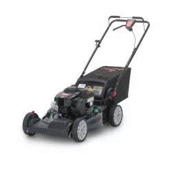 Easily maneuver through your yard with the Troy-Bilt TB220B XP SpaceSavr™ self-propelled walk behind lawn mower. The TB220B XP was designed to be stored flat under a tool bench or in an upright, vertical position against the wall, saving storage space in your shed. Variable speed front wheel drive provides improved control and faster turns. A reliable 150cc Briggs & Stratton engine features ReadyStart™ technology for simple, no prime no choke starting. The 21″ steel deck provides durability that’s built to last and includes a deck wash for easy maintenance. Dual-lever height adjusters are conveniently located to quickly adjust the cutting height. Dispose of grass clippings with either the side discharge chute, the included 1.9 bushel bag or the included mulch kit. With a reliable 3-year limited warranty, you can count on Troy-Bilt to help make yard work easier.