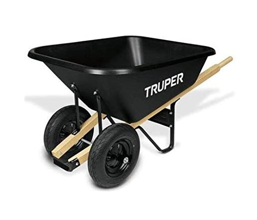 When you need to move large loads, this is your wheelbarrow. Two wheels provide better balance and control than single wheel wheelbarrows and full length hardwood handles provide excellent leverage. 8 Cu. poly wheelbarrow Dual wheels Steady two wheel design for easy handling and balanceÂ