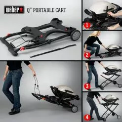Grill beyond your patio. The Portable Cart is designed to make grilling on-the-go as easy as flipping a burger. Place your Q grill onto the cart and use it as a stationary stand that sits at the optimal grilling height. When ready to take your grilling adventures on the road, simply fold it down and roll it to your car or straight to the beach.